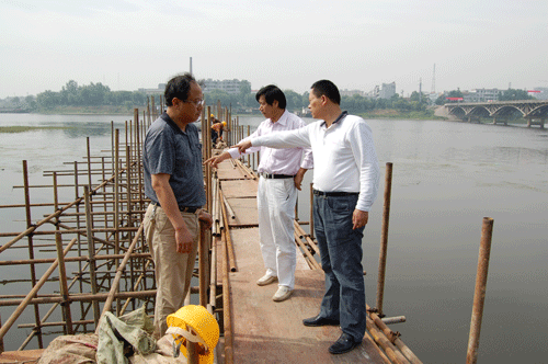 2009年5月31日,公司李世龍總經(jīng)理、劉朝發(fā)副總經(jīng)理、工程部李立柱經(jīng)理、辦公室紀(jì)愛國主任等到公司承建的泉河大橋檢查工作。