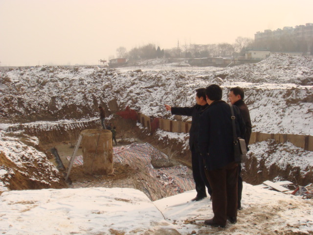 2010年1月10日公司盛智杰總工及公司有關(guān)部門負責人一行到泉河大橋檢查指導(dǎo)工作,經(jīng)過工地現(xiàn)場實地查看,以及項目部施工資料的檢查,7號、8號樁基承臺施工質(zhì)量符合設(shè)計要求,并且已通過工程監(jiān)理檢查及第三方檢測,可以進行上部回填,其他樁基自檢質(zhì)量符合設(shè)計要求,已通過工程監(jiān)理簽證,待近日第三方檢測通過后進入下道工序。箱梁預(yù)制在冬季采用蒸汽養(yǎng)護,已制成的5根自檢質(zhì)量符合設(shè)計要求。