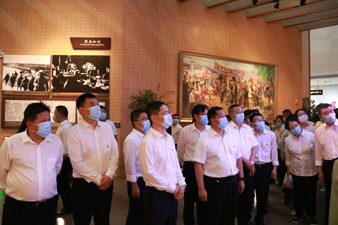 為慶祝中國共產(chǎn)黨成立100周年,貫徹落實黨史學習教育工作要求,5月11日下午,安徽交航機關黨支部、引江濟淮項目黨支部、聯(lián)合開展黨史學習教育主題黨日活動。公司領導班子成員,機關全體黨員、引江濟淮項目全體黨員以及職工群眾共120余人前往渡江戰(zhàn)役紀念館,重溫入黨誓詞,緬懷革命先烈豐功偉績,聆聽黨委書記、董事長、總經(jīng)理方申柱講黨課。