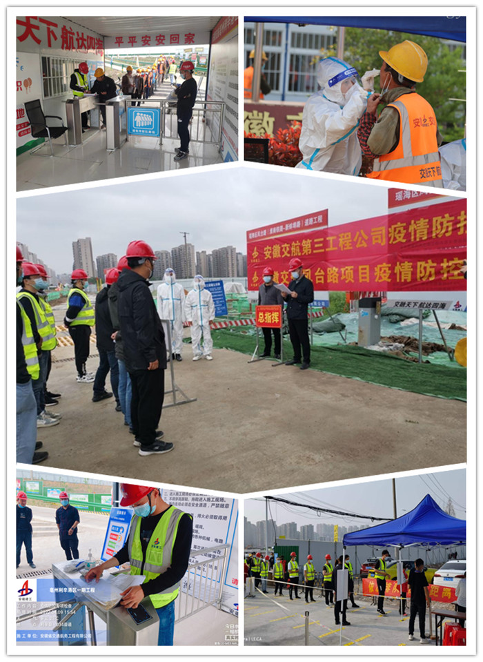 “請大家戴好口罩有序排隊(duì),前后人員保持一米距離?!薄澳?,出示您的安康碼和行程卡,并接受體溫檢測。”日前,利辛縣邵渡口大橋項(xiàng)目部聯(lián)合邵渡口村委會(huì),集中組織28名管理人員及120名勞務(wù)班組作業(yè)人員依次進(jìn)行核酸檢測、體溫測量和信息登記。二公司、三公司、亳州利辛港區(qū)項(xiàng)目部、滁州項(xiàng)目部等基層單位及時(shí)召開專題會(huì)議,按照公司黨委要求,積極落實(shí)疫情防控措施、制定抗疫方案,對工作人員進(jìn)行常態(tài)化體溫檢測、定期核酸檢測、兩碼聯(lián)查登記、人員進(jìn)出管控,并積極加強(qiáng)防疫宣傳、定期消殺及物資儲(chǔ)備……多措并舉阻斷疫情擴(kuò)散,確保疫情防控措施落實(shí)到位,強(qiáng)化疫情源頭防控。