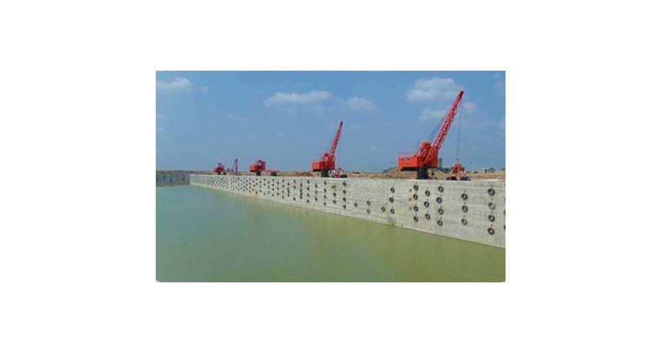 該工程設(shè) 17 個(gè) 500t 級(jí)重力式碼頭泊位,其 中散貨碼頭 10 個(gè)、件雜貨碼頭 7 個(gè),年吞吐量 為 8000000t,為千里淮河第一港。